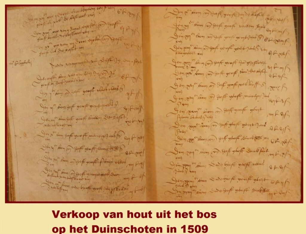 In een eerdere aflevering uit de serie over de geschiedenis van de binnenduinen op deze website kwam al aan bod dat Maria van Bourgondiën, gravin van Holland, met haar man Maximiliaan van Oostenrijk in 1477 het beleid rond grafelijk bezit stevig aangepakt hebben. De opeenvolgende houtvesters waren in de eeuw daarvoor fors nalatig in hun onderhoudstaak van dit grafelijke bezit en het Haarlemmerhout wordt specifiek genoemd. Later is zelfs sprake van een aparte houtvester voor dit bosgebied naast een houtvester voor geheel Noord-Holland, waaronder in die tijd ook een groot deel van het huidige Zuid-Holland viel. Overigens werden beide functies meestal door dezelfde persoon ingevuld. De verantwoordelijkheid voor natuur- en cultuurgronden wordt vanaf dat jaar 1477 neergelegd bij de stadhouders van Holland, de uitvoering bij luitenant-houtvesters. Er zijn geen kaarten of gedetailleerde beschrijvingen van het Haarlemmerhout uit die periode, we kunnen wel informatie halen uit de kosten- en inkomstenposten in de jaarrekeningen van de grafelijkheid. Het bos was vooral vanwege het kostbare hakhout belangrijk. Dat valt bijvoorbeeld af te leiden van het feit dat bij veiling het hakhout verkocht werd per boom en per tak, waarbij ook nog eens onderscheid werd gemaakt in groene of dorre bomen en windval of afgezaagde takken. Niet elk jaar werd hout verkocht en kap van groene of levende bomen lijkt, voor zover na te gaan, zoveel mogelijk beperkt te worden.Vanwege de hoge prijzen werd illegale kap dan ook zwaar bestraft, net als illegaal weghalen van zand uit het duin.