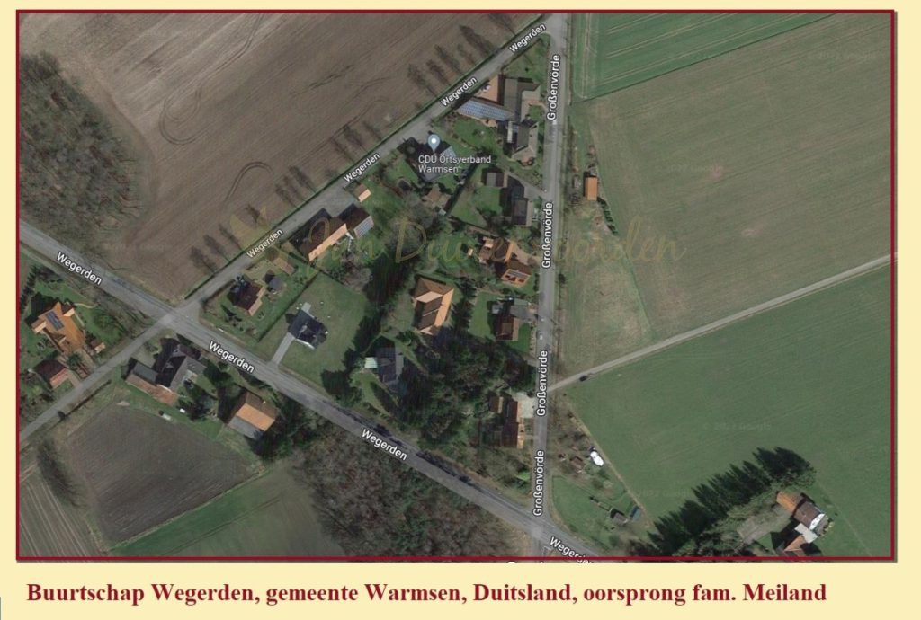 De genealogische gegevens uit Duitsland die op woningniveau zijn samengesteld leverde ook nog een extraatje op. Je kunt vaststellen in welk buurtschap het huis aan de Wegerden anno 2022 gestaan zou hebben. Met dank aan Google Maps.