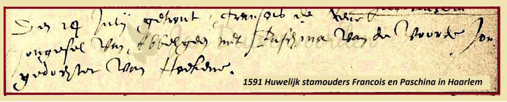 Update januari 2023: het huwelijk van stamvader Pieter de la Roche (Rosse) dat hierboven nog op circa 1625 is gesteld, is door Charles Horsthuis gevonden in Geertruidenberg. Pieter trouwt in 1628 als “Piere de la Rosse jongeman, geboren in Bretagne” met Sara Maximiliaensdochter van den Brouck, weduwe van de eveneens Franse Antoine Forettier.