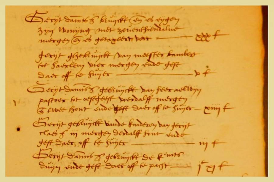 In combinatie met dezelfde informatie uit een latere 10e Penningregister komen we tot de volgende omschrijving: Geryt Dammaszoon bewoont zijn eigen huis. Daarnaast gebruikt Geryt als eigenaar zeventien en een half morgen veen waarvan een deel is toegemaakt (verbeterd jd). Ook heeft hij nog vier morgen hoog veenland in gebruik van meester Lambert uit Haarlem en bijna vijf morgen van de pastoor van Oegstgeest.. Van de kinderen van Geryt Claeszoon (Van der Laen) gebruikt Geryt drie morgen anderhalf hond land. Hij gebruikt van de keizerlijke majesteit (graaffelijke overheid) het Sillicker Duijn. (Een morgen is 600 Rijnlandse Roe of 0,85 hectare).