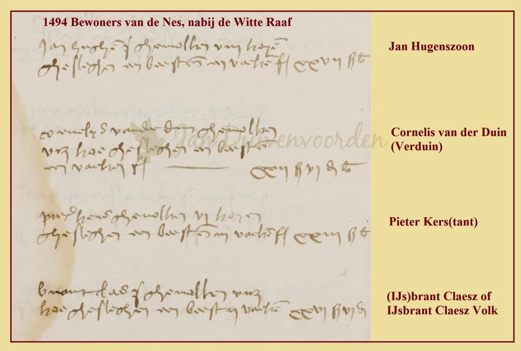 IJsbrant Volk, later zijn weduwe Alijdt en vervolgens de nazaten van dit echtpaar komen in 16e eeuwse belastingoverzichten regelmatig terug als buren van Pieter en zijn opvolgers.Uit dit echtpaar zijn twee grote families voortgekomen: Duijndam en Alckemade. Maar ook leden van de familie Van der Duijn of Verduijn worden lang als buren van de bewoners van de Witte Raaf genoemd.