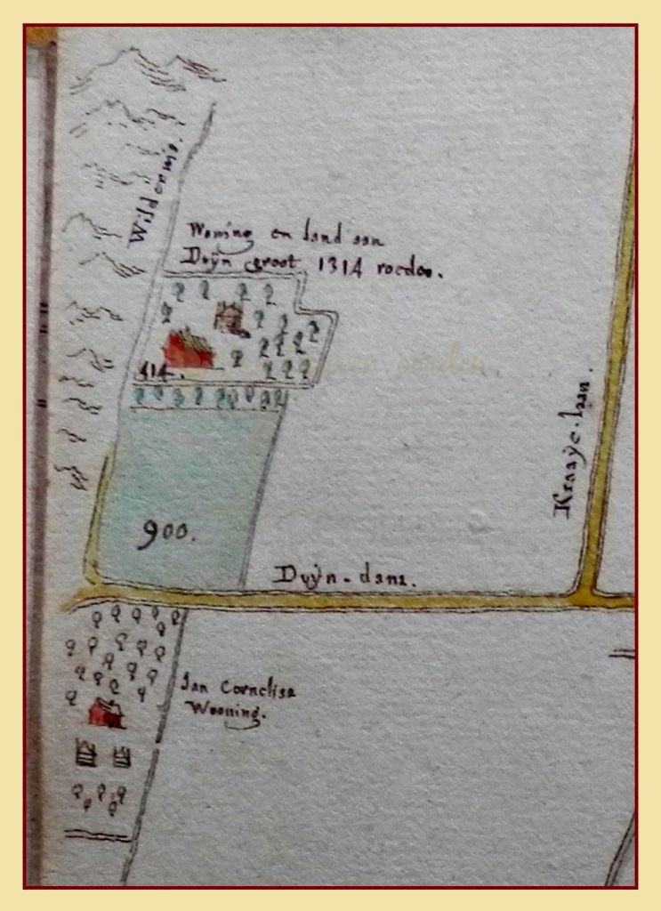 Woning aan Duijndam. Pieter Pieterszoon van den Bos koopt de oude boerderij aan de noordzijde van Dirck Corneliszoon van Alckemade. Zijn dochter trouwde Jan Arijszoon Duijvenvoorden. Hij staat aan de basis van de grote Katwijkse familietak die hun achternaam schrijven als Van Duijvenvoorde.