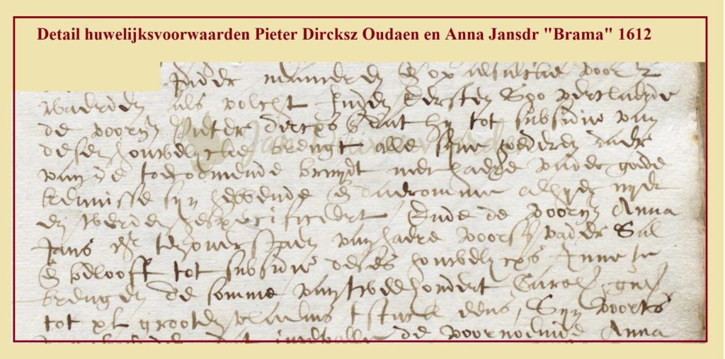 1612-1644 Pieter Dirckszoon Oudaen en Anna Jansdochter “Brama”