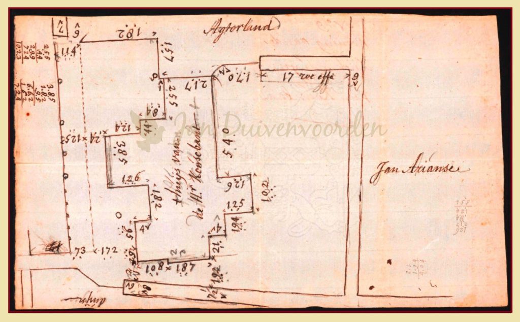 De vraag is vervolgens wie de huidige Vaartwelwoning dan heeft laten bouwen. Gezien de datering van bovenstaande landmeterstekening uit circa 1730 en de verkoop door de familie Cousebant in 1734 lijkt het onwaarschijnlijk dat die familie vlak voor verkoop nog een nieuwe woning liet bouwen. En gezien de zeer broze status van het huwelijk van Adriaen Cousebant en Maria Emonds kunnen we dat idee definitief afschrijven. Je verkoopt niet een woning die je net tevoren gebouwd hebt?