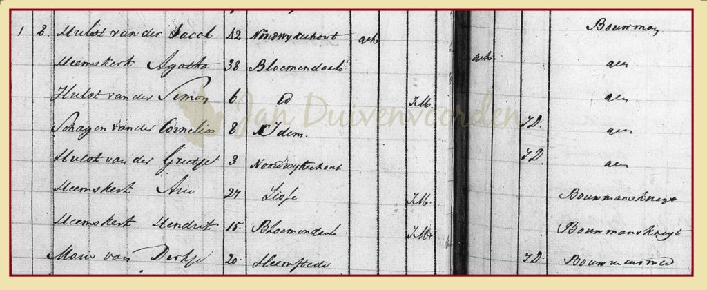 | 1808 | Sijmon der Hulst Grietje van Maris | Gerritje Pietersdr van Roon x Cornelis van Zuijlen |