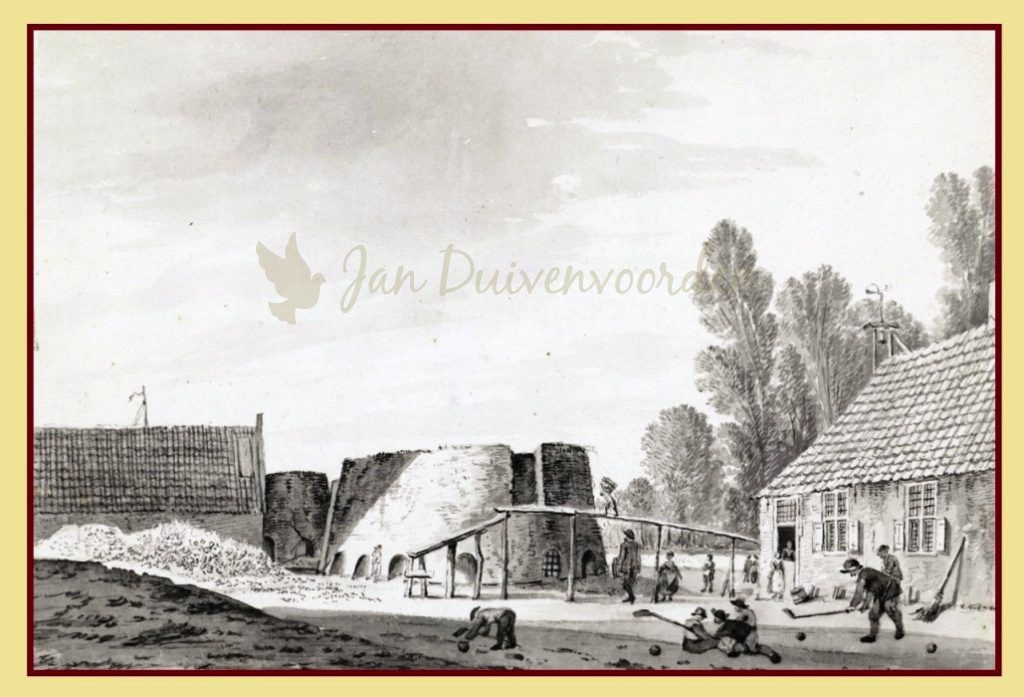 Een realistisch beeld van de kalkovens en het zware werk van de arbeiders wordt fraai weergegeven door Hendrik Tavenier. Zijn tekening is gemaakt tijdens de periode Cornelis Soutman (1764-1784). Naast de ovens met laadsteigers en een turfschuur of leshuis zijn schelphopen weergegeven. De kinderen op de voorgrond spelen een spelletje kolf. De bel op het huis rechts werd mogelijk geluid bij brand.