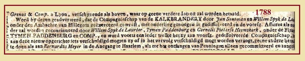 Jan Soutman verkoopt vanuit Brussel in 1788 zijn helft in het kalkbranderijcomplex aan timmerman Tijmon Paddenburg uit Warmond en boer Cornelis Pieterszoon Heemskerk uit De Vogelenzang. Zij dienen gemaakte afspraken te respecteren en betalen voor hun helft een bedrag van zesduizend gulden, bestaande uit de overname van de helft van een hypotheek die Jan Soutman had afgesloten en een contant bedrag van twaalfhonderdvijftig gulden. De nieuwe eigenaren Tijmon en Cornelis sluiten hiervoor een lening af bij de voormalig schout van Lisse, Lutsenburg. De jaarlijkse lijfrente voor Cornelis Soutman wordt gehalveerd naar 300 gulden. En de kalkbranderij gaat nu verder onder de naam “Tijmon Paddenburg & Compagnons”, zoals geadverteerd wordt in kranten.