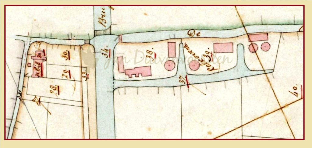 De eerste kadasterkaart uit 1818 geeft een nauwkeurig beeld van het kalkovencomplex zoals dat al rond 1720 aan de Beeklaan te vinden was. Bij de oprichting was sprake van twee ovens op het perceelnummer 39. Na de aankoop van perceel 38 in1684 is daar een derde bijgekomen en de vierde zou door Gerrit Corneliszoon ’s-Gravenmade gebouwd zijn rond 1720. Links het huis dat nog door Adriaen Corneliszoon Akersloot was gebouwd kort voor 1670. Het huis wordt vaak omschreven als “het huis met de kerk” en in dit eerste kadaster wordt het gebouw dan ook met twee aparte nummers weergegeven. De getekende vorm wijkt overigens stevig af van het huis dat nu nog op exact dezelfde plaats staat, bekend als het “huis van Ruigrok” .