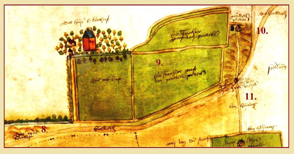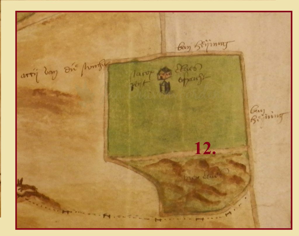 6. Leeuwenhorst. Het klooster Leehorst of Leeuwenhorst was eigenaar van een perceel akker of weiland in dit gebied, dat ook op latere kaarten van het klooster te zien is.
