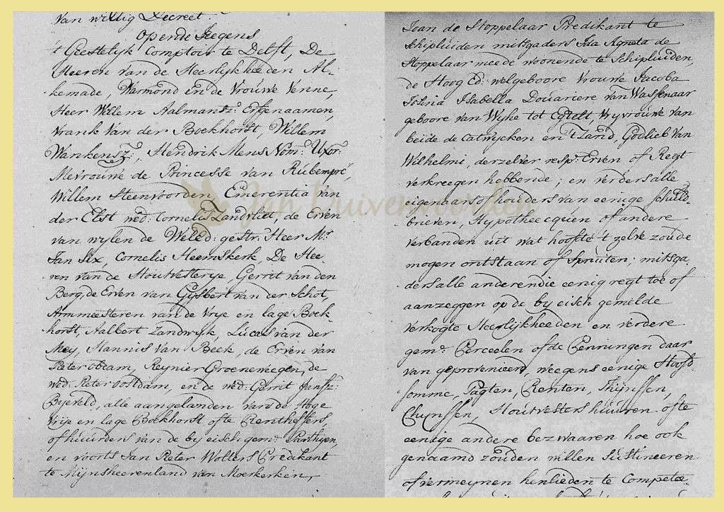 In het verhaal De Prinses en de Student is op deze website uitgebreid ingegaan op de ruzie tussen de Vlaamse prinses de Rubempré en Hagenaar Nicolaas de Stoppelaar over de betaling van de aankoop van de Heerlijkheid van de Hooge en Laage Boekhorst in 1772. De Stoppelaar wilde pas betalen als de leenbrieven van de heerlijkheid aan hem overgedragen waren zodat hij zich officieel Heer van de Boekhorst kon noemen. Iets wat hij overigens in al zijn onbescheidenheid toch gewoon deed. Maar de Vlaamse prinses en haar adviseurs hadden echt wel in de gaten wat voor vlees zij in de kuip hadden met de Haagse jurist en notaris, een kat in het nauw met een berg schulden, maar ook een sluwe vos met rare streken.